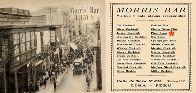 The Pisco Sour as we know it today was first prepared in the year 1920 at the historic “Morris Bar” in Jiron de la Union near the center of Lima according to historians Jose Antonio Schiaffino and Guillermo Toro-Lira.